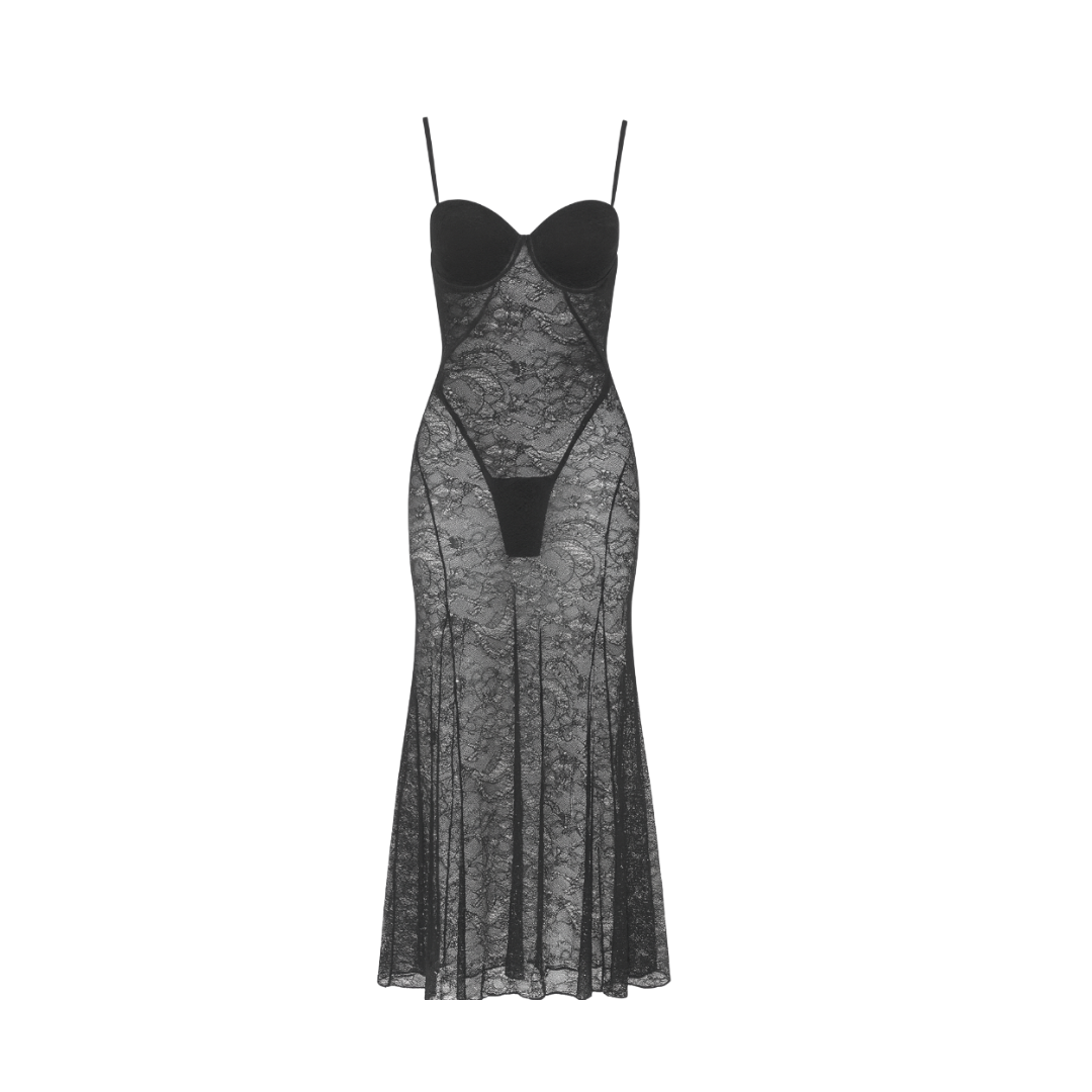 The Sabine Lace Bodysuit Dress is your go to make them stare piece. The sheer floral lace feels soft and confident, while the built in bodysuit keeps everything exactly where it should be. Sabine moves with you, fluid, flattering and bringing instant wow-energy every time you slip her on.
