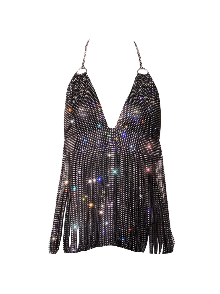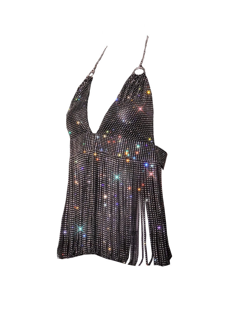 Covered top to bottom in a black lattice of diamantes, you'll sparkle and shine from every angle!